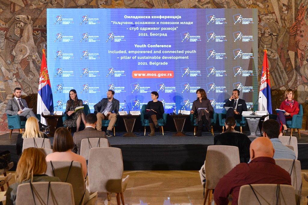 The third panel focused on the results of development projects supported by the Ministry of Youth and Sports during 2021 where representatives of the National Association of Youth Workers – NAPOR, the Serbian Youth Umbrella Organization – KOMS, the National Association Youth Office – NAKZM, OPENS and Young Researchers of Serbia presented their projects and activities.