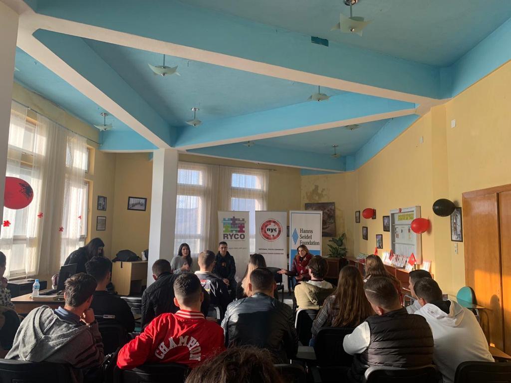 RYCO and NYC visited six cities – Korca, Durrës, Shkodra, Kukës, Rrëshen and Vlora. The events were attended by high school and university students. Some of them were beneficiaries of the trainings organized by NYC on active citizenship, which took place during summer 2019, as part of the same project. Based on these trainings, the NYC published a Manual on Active Citizenship “Strengthening the role of youth in Albania and in the process of rapprochement to the EU”.