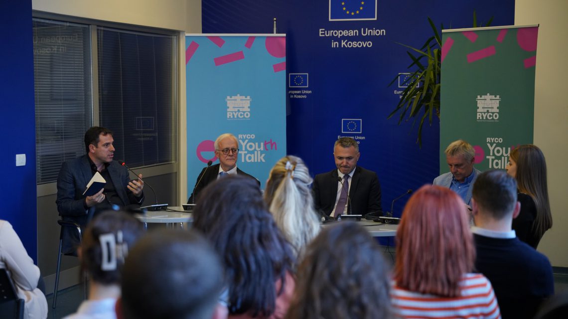 Final RYCO Youth Talk – The Berlin Process edition took place in Pristina. The event gathered young participants and prominent guests, such as H.E. Mr. Jörn Rohde, Ambassador of the Federal Republic of Germany in Kosovo, representatives of the Cabinet of Prime Minister of Kosovo*, representatives of the French Embassy and Balkans Policy Research Group – BPRG. Moderated by the Head of the LBO Ms. Krenare Gashi Krasniqi, the panel discussion once again highlighted the importance of stronger youth involvement in decision-making within the Berlin Process and Western Balkans authorities. Participants recognized the Berlin Process as essential for establishing RYCO and its operation and reflected on how the process provided opportunities for exchange and intercultural learning among young people in the Western Balkans region.