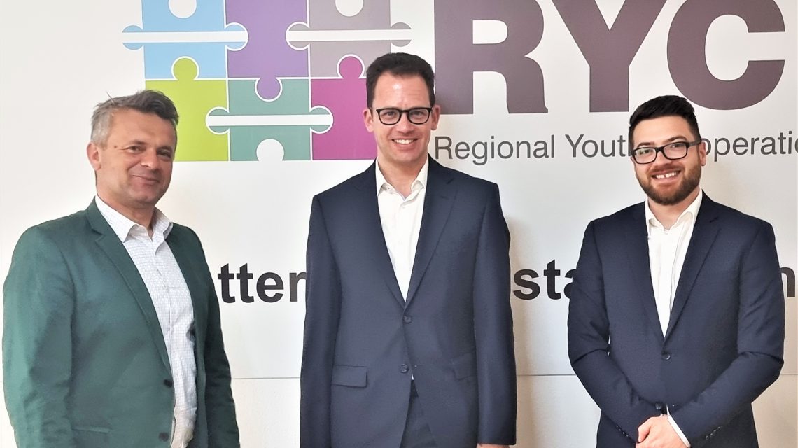 TIRANA – RYCO Secretary General and Deputy Secretary General, Mr Albert Hani and Mr Denis Piplaš, met with Secretary General of the Assembly of European Regions (AER) Mr Christian Spahr on Monday, 28 March when they got familiarized with the work AER and discussed possible areas of cooperation between the organizations. RYCO representatives shared the