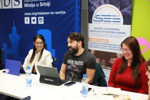 The panel, consisting of Mr. Đorđe Krivokapić, professor at the Faculty of Organizational Studies, and co-founder of the SHARE Foundation, Ms. Staša Ivković, president of the NGO OsnaŽene, and